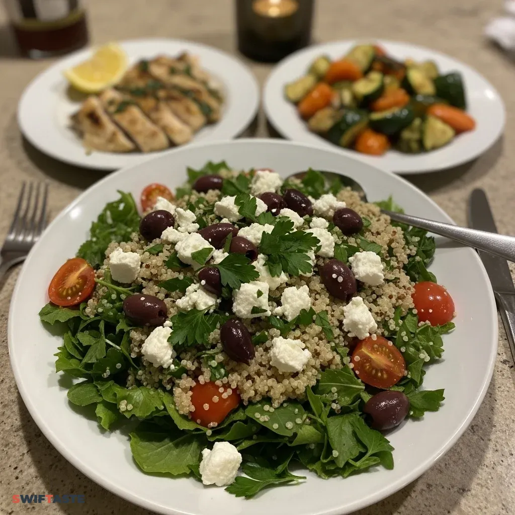 While this Greek Salad with Quinoa and Feta serves as a complete meal on its own, it also functions as a versatile side dish. Pairing it with the right proteins or complementary vegetables can elevate your dining experience.