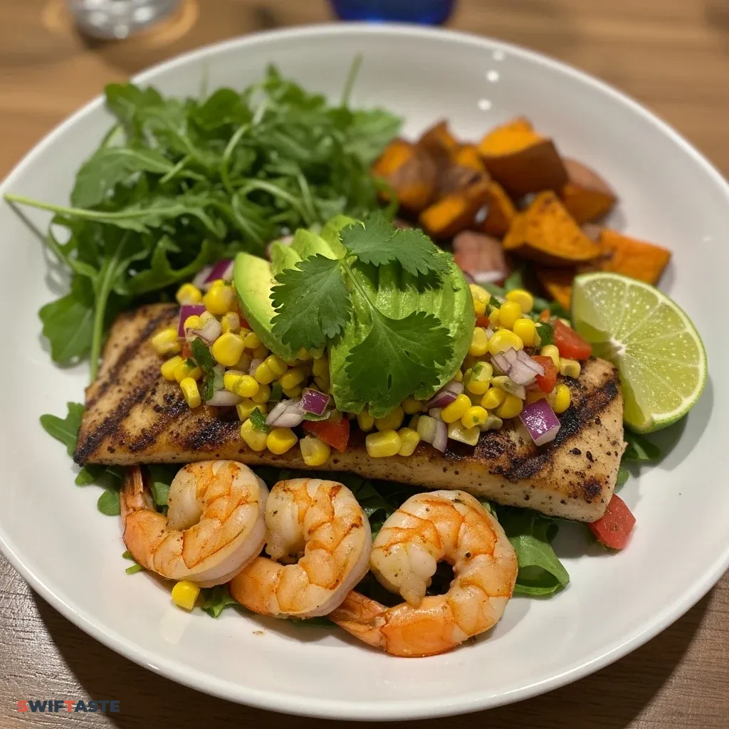 While the Grilled Fish Shrimp Bowl with Avocado and Corn Salsa is a complete meal on its own, you can enhance the table with light side dishes. A simple arugula salad with a lemon vinaigrette adds a peppery bite that complements the sweetness of the corn. Roasted sweet potatoes provide an extra dose of complex carbohydrates and Vitamin A.