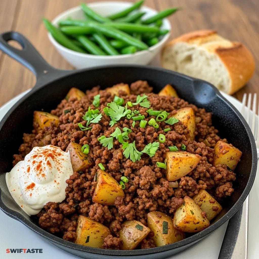- Sweet Potato Twist: Replace the white potatoes with sweet potatoes for a boost of Vitamin A and a touch of sweetness. This version of the Ground Beef and Potatoes Skillet pairs excellently with chili powder.