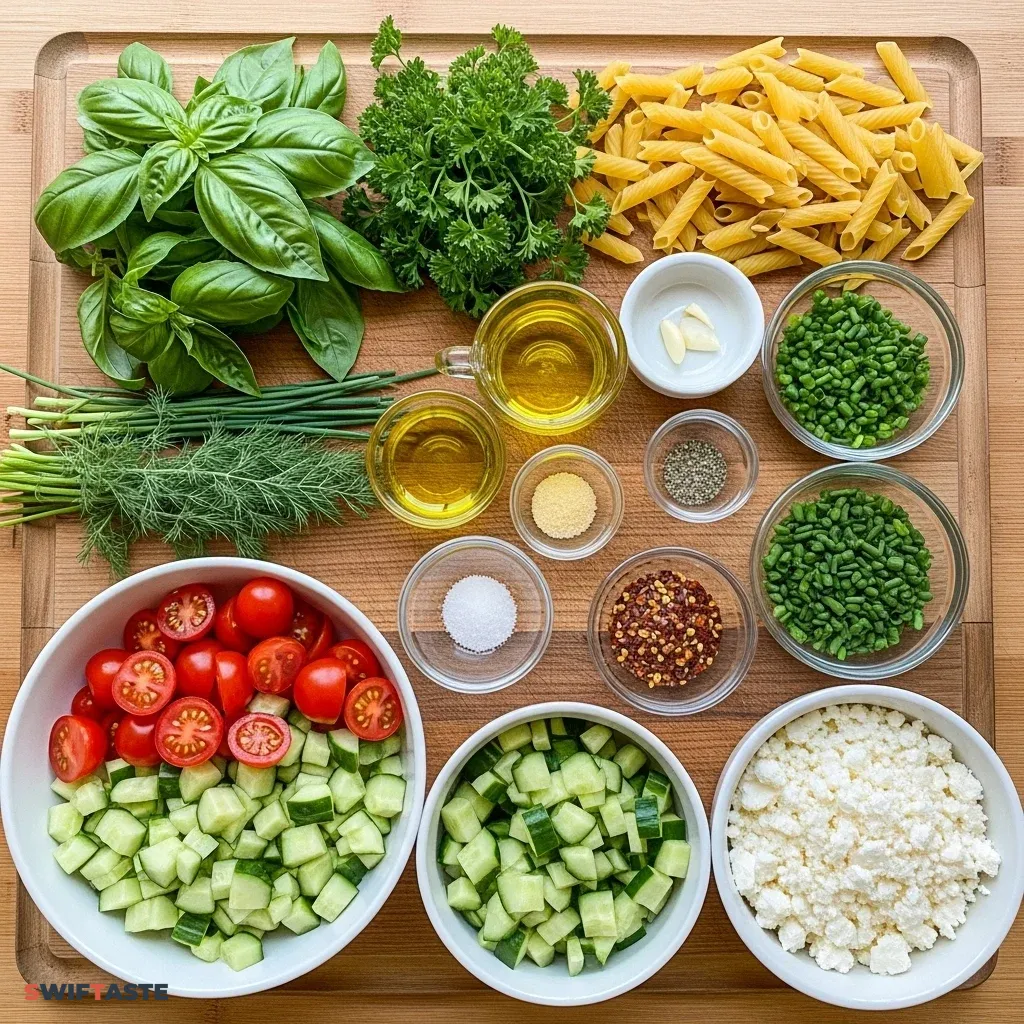 To create a truly authentic Herb Pasta Salad, the quality of your ingredients makes all the difference. I always recommend sourcing your herbs from a local farmer’s market or your own backyard garden to ensure peak potency. Use a high-quality, cold-pressed extra virgin olive oil to provide a silky mouthfeel and a peppery finish.