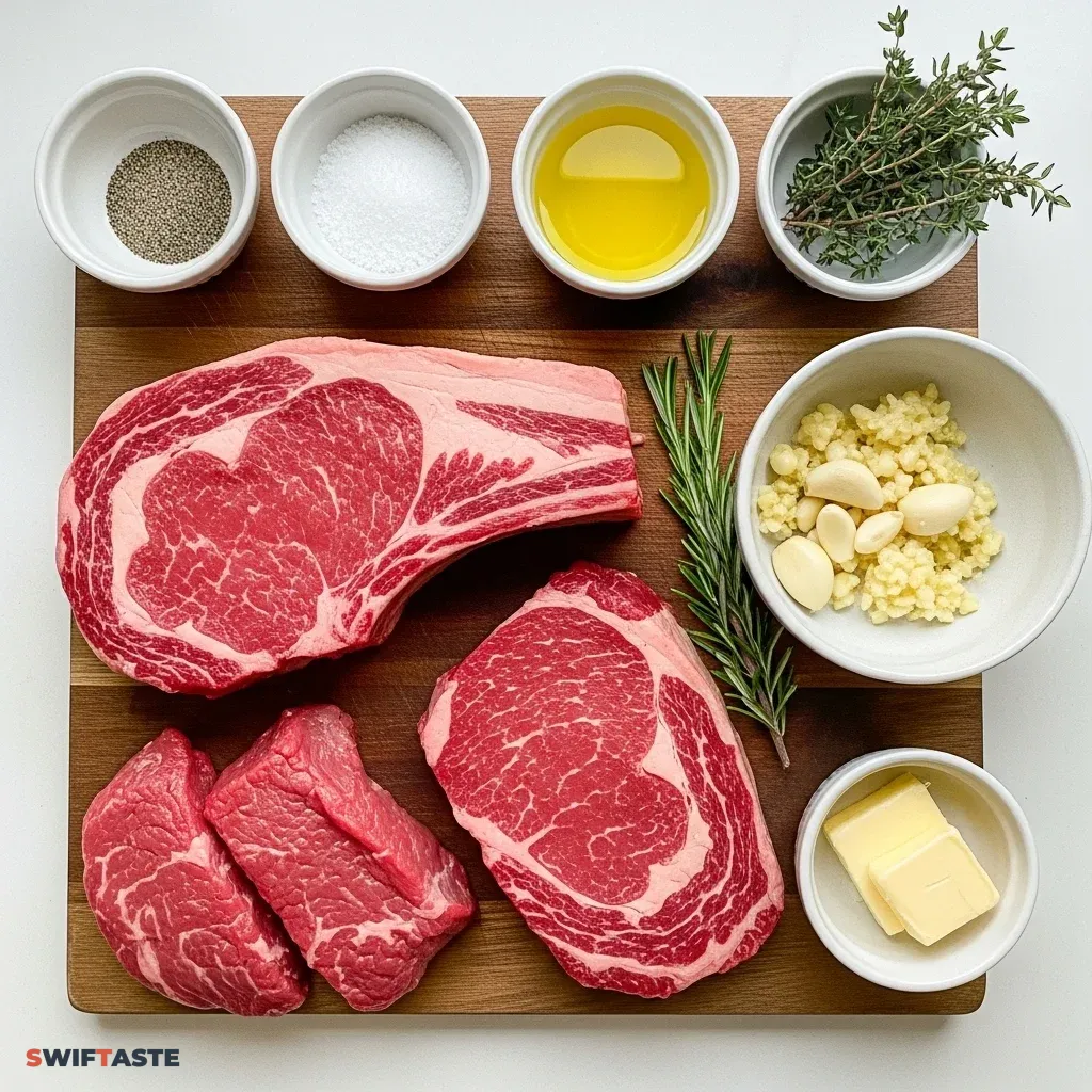 The foundation of a great Roasted Beef Steak Meal is the quality of the raw materials. I always recommend sourcing thick-cut steaks, at least 1.5 inches thick, to allow the heat to penetrate evenly without overcooking the center.