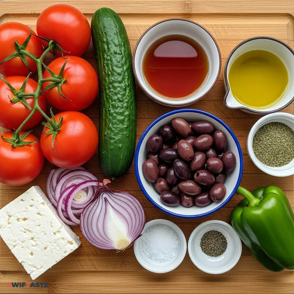 The Zesty Greek Salad relies on the contrast between the creamy cheese and the acidic dressing. Use the following table to gather your supplies for the perfect Zesty Greek Salad experience.